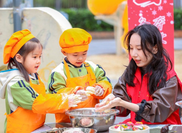 2025年11月4日,浙江省湖州市长兴县雉城街道,青年志愿者走进长兴县奥园幼儿园开展制作“青团子”迎“立冬”习俗体验活动,小朋友们在志愿者的指导下体验制作“青团子”,在实际操作中丰富孩子们的生活经验和动手能力,了解立冬节气的传统习俗,感受浓浓的节气文化。(中国教育报-中国教育新闻网 通讯员 陈海伟 摄)