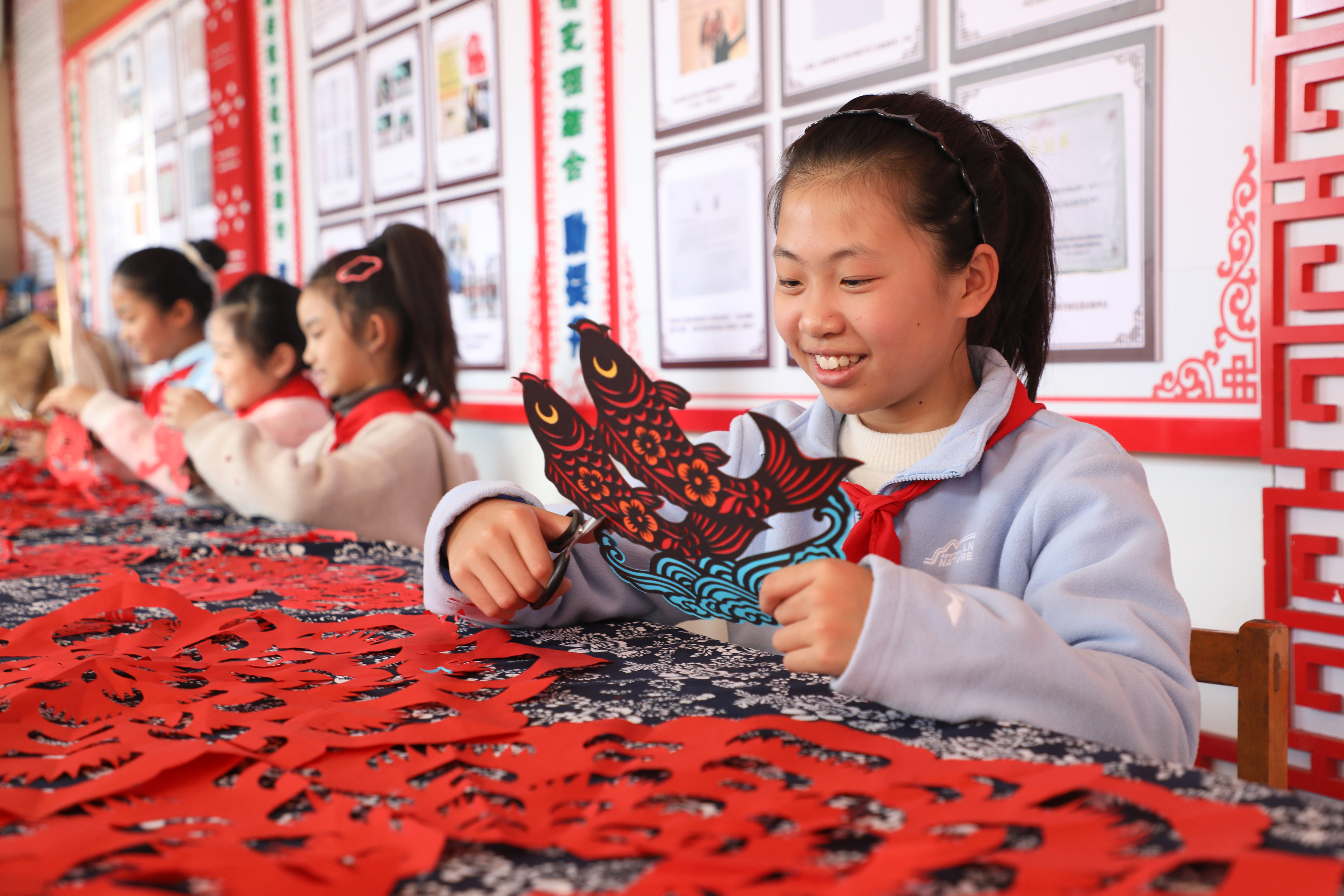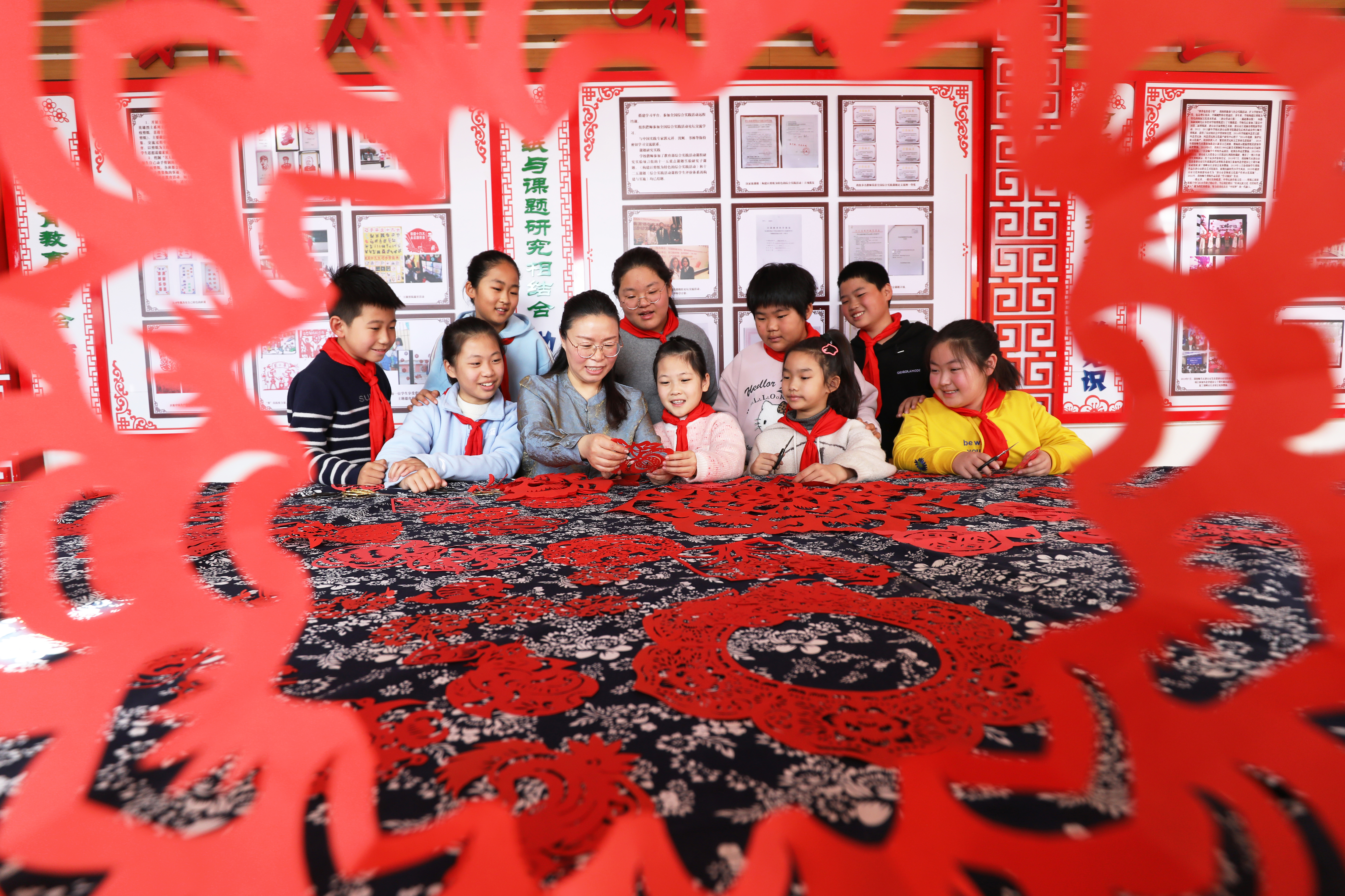 二十多年来,河北省唐山市路北区韩城镇中门庄小学开设非遗剪纸文化课,并聘请非遗传承人为学生授课,培养学生的实践动手能力,让孩子们感受传统文化的魅力。(中国教育报-中国教育新闻网通讯员 朱大勇 摄)