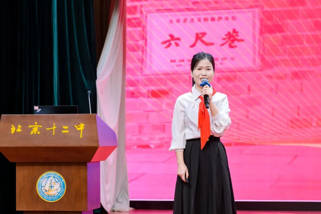 在北京市第十二中学,巡讲团成员、东北师范大学附属中学教师刘强从古人笔下的家国情怀讲起,串联起百年前先辈救亡图存的夙愿,再到今日中国通过一个个五年规划逐步走向社会主义现代化 的壮阔历程,激励少先队员们爱党爱国、勤奋好学、全面发展。