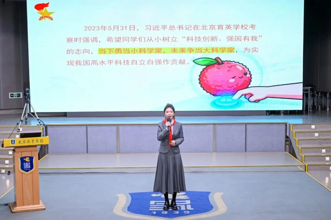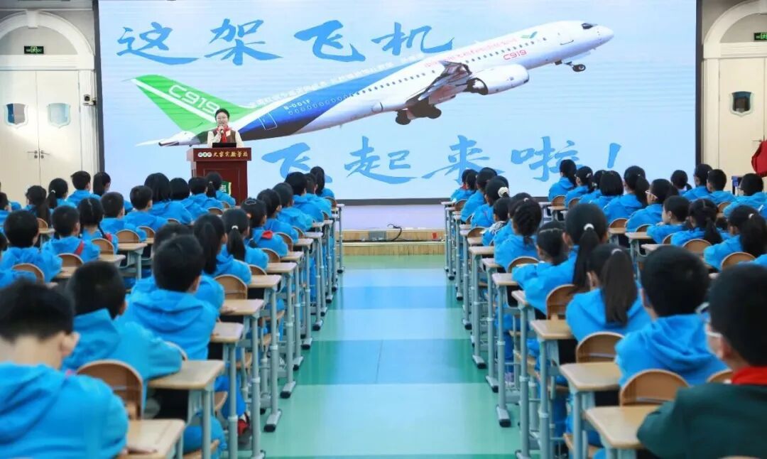 在北京市东城区史家实验学校,巡讲团成员、来自民航博物馆社教部的孙璐璐以《这架大飞机飞起来啦》为题,讲述C919从设计、制造到首飞、商业运营的关键节点,生动呈现我国航空工业自主创新的艰辛与成就,帮助队员们理解科技自立自强的重要意义。