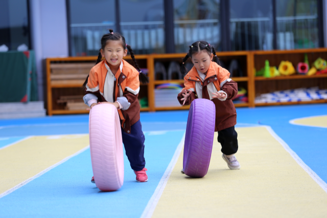 11月24日,四川省乐山市实验幼儿园至乐分园推进户外两小时活动,组织跳绳、滚轮胎、小推车等丰富多彩的项目,让孩子们在快乐的体育运动中锻炼身体、增强体质,养成户外运动的良好习惯。中国教育报-中国教育新闻网通讯员 李华时 摄