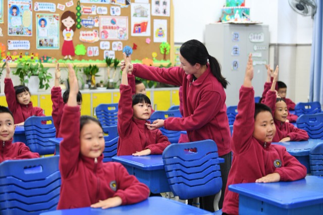 为丰富校园文化生活,释放学生压力,今年以来,贵州省贵阳市南明区花果园第三小学的舞蹈老师把美育元素与体育锻炼相融合,为学生们创编了多套“课桌舞”。伴随着动感旋律,学生们以手势为舞,在活跃课间气氛的同时调节情绪、活跃身心。中国教育报-中国教育新闻网通讯员 赵松 摄