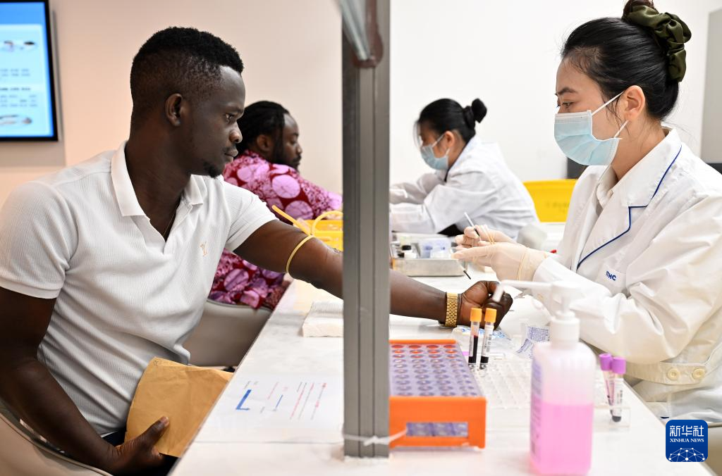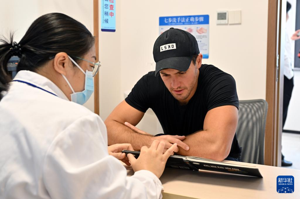 11月27日,外国入境人员在海南国际旅行卫生保健中心进行入境体检。