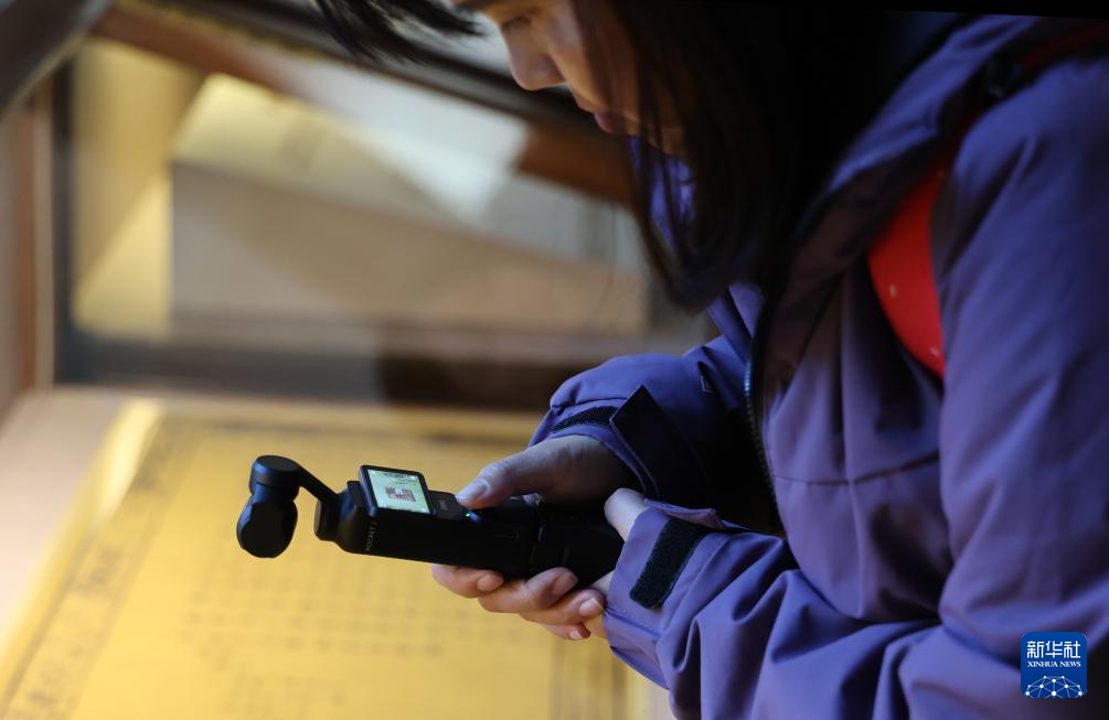 11月28日,在辽宁大连旅顺博物馆,媒体工作者拍摄展出的“明谕琉球国王敕”(仿制品)。新华社记者 李钢 摄
