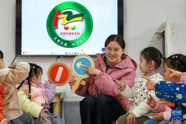 12月2日,在南京市太平巷幼儿园,老师给孩子们讲解交通安全知识。新华社发(辛一摄)