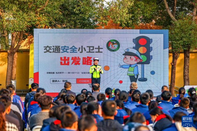 12月1日,在江苏省扬州市江都区武坚镇,武坚中学学生参加当地公安部门举办的道路安全校园行知识大闯关活动。新华社发(任飞摄)
