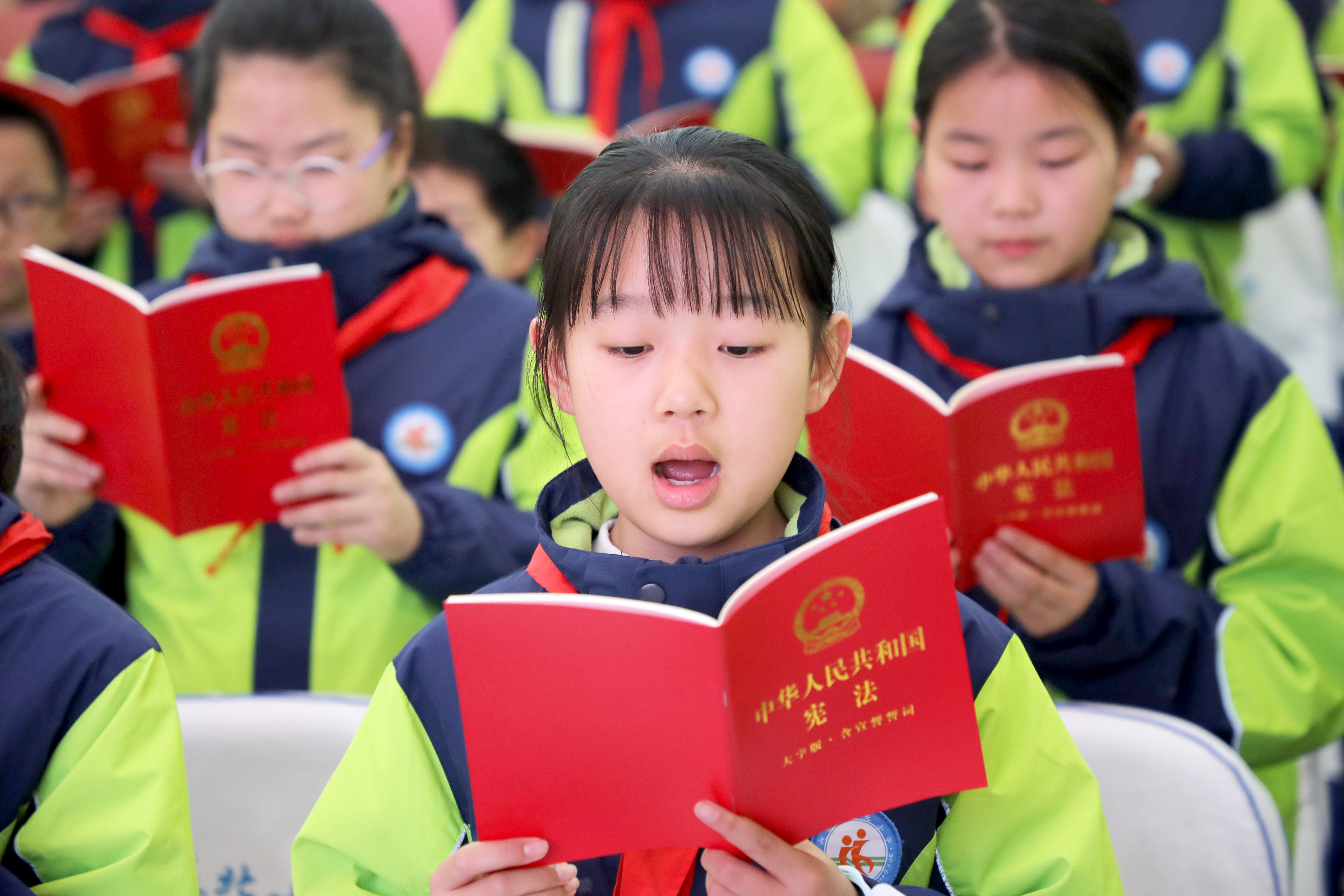 安徽省六安市城北小学的同学们在朗读宪法。 通讯员 田凯平 摄