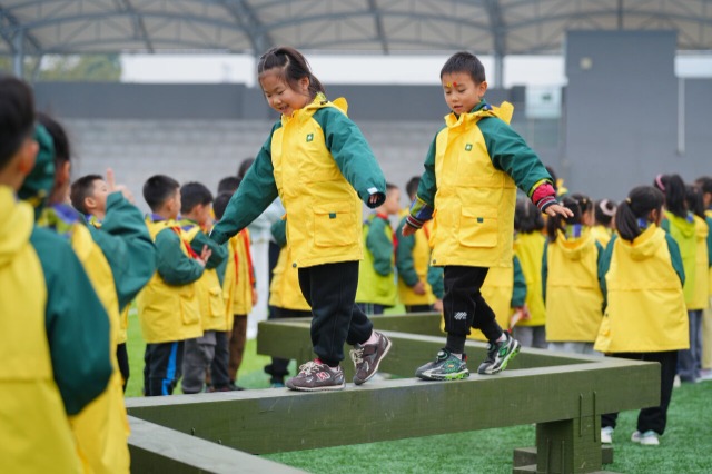 学生们在体验穿越独木桥项目 秦廷富 摄