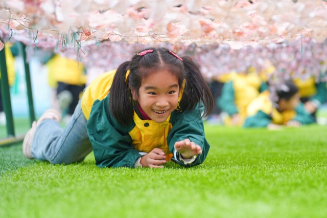 学生们体验穿越障碍高姿网项目 秦廷富 摄