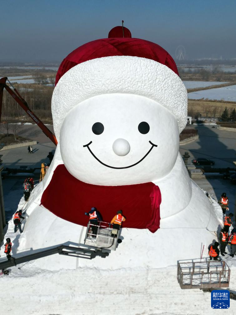 12月14日,正在建设中的哈尔滨群力音乐公园网红大雪人头部已完成,露出憨态可掬的笑容。今年回归的大雪人将在保留红帽子、红围脖、红色爱心纽扣“经典皮肤”的基础上,再次升级。设计身高19米、长14米、宽11米,比往年“长高”1米,总用雪量超过3000立方米,比往年增加1200立方米,达到历年之最。