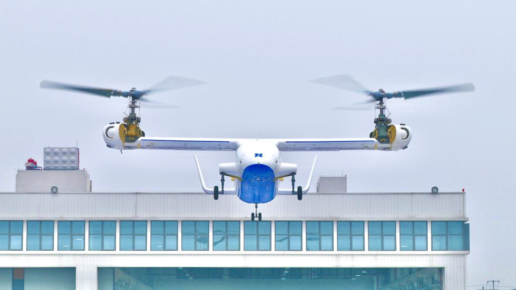 联合飞机集团董事长田刚印介绍,飞行器搭载了拥有完全自主知识产权的智能倾转与飞控系统,采用高性能涡轴发动机与先进复合材料桨叶,并广泛应用轻量化复合材料及一体化成型技术。