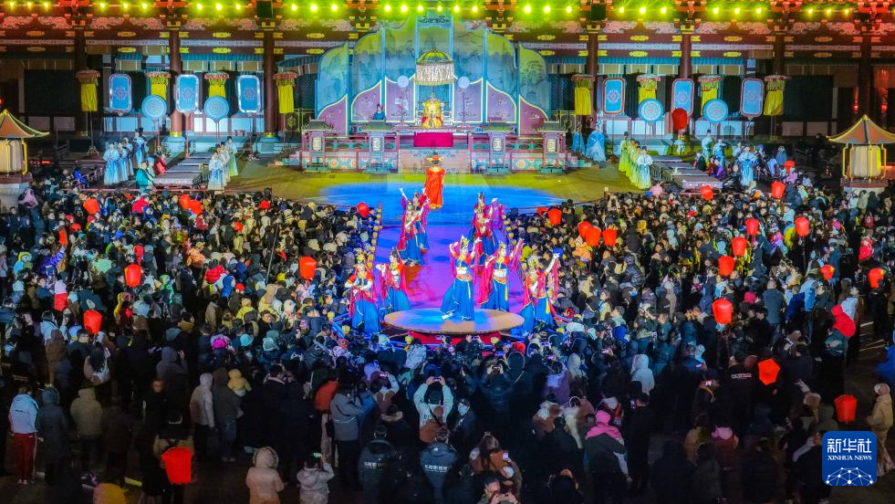 1月1日,游客在河南省洛阳市隋唐洛阳城国家遗址公园内欣赏演出。