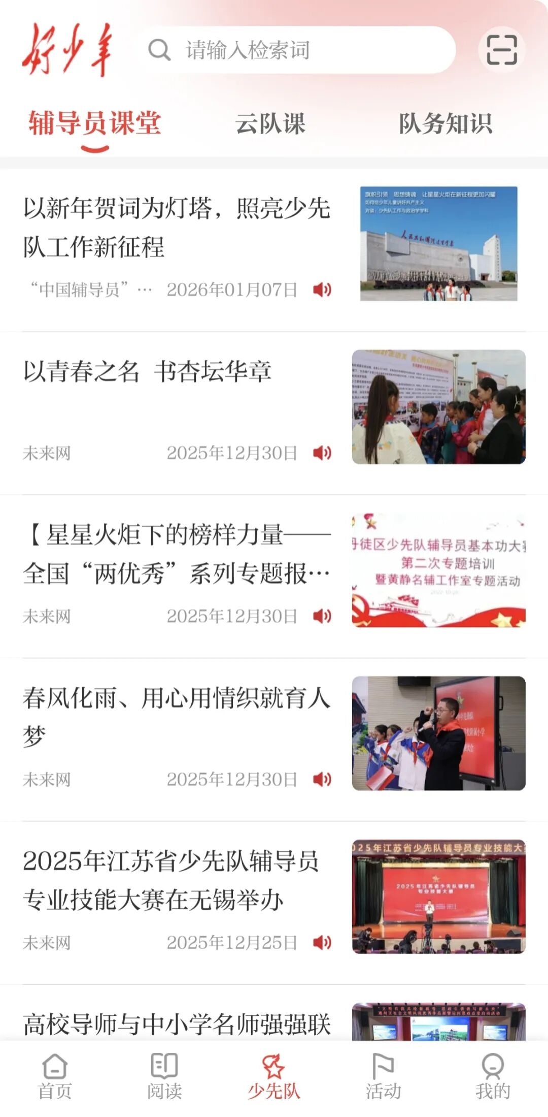“好少年”APP汇集《中国少年报》《辅导员》杂志及未来网等优质内容,突出少先队教育特色,重点搭建涵盖辅导员培训、少先队云队课、队务知识三大板块的核心功能区,打造权威专业的少先队教育数字化平台,助力少先队工作高效开展。