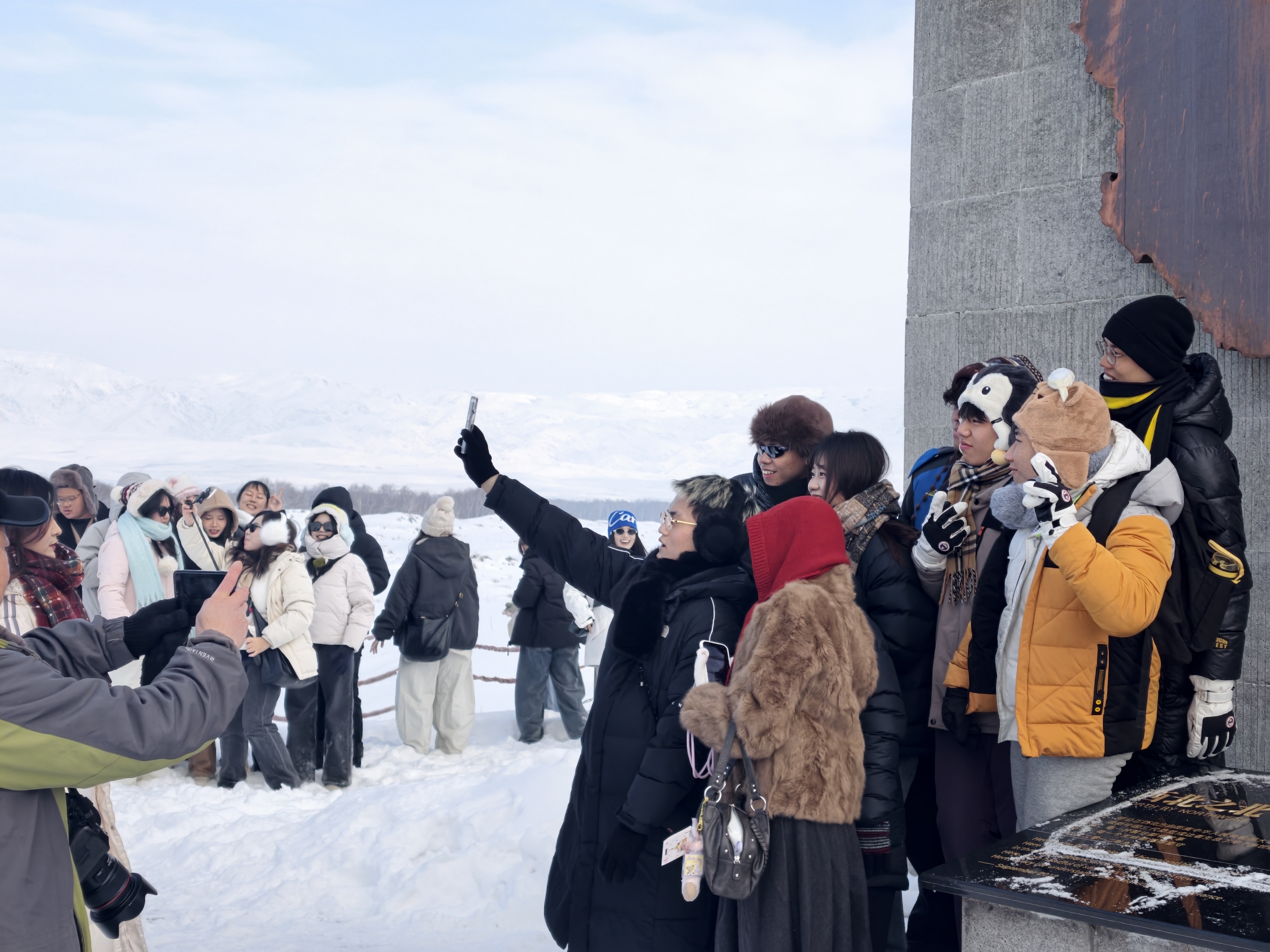 同学们激动不已,纷纷奔向观景台。面对眼前圣洁壮美的高山雪域,震撼之情油然而生。“我看过不少地方的雪景,但这里的雪景之美堪称‘天花板’级别。”来自台湾铭传大学的何同学赞叹道。