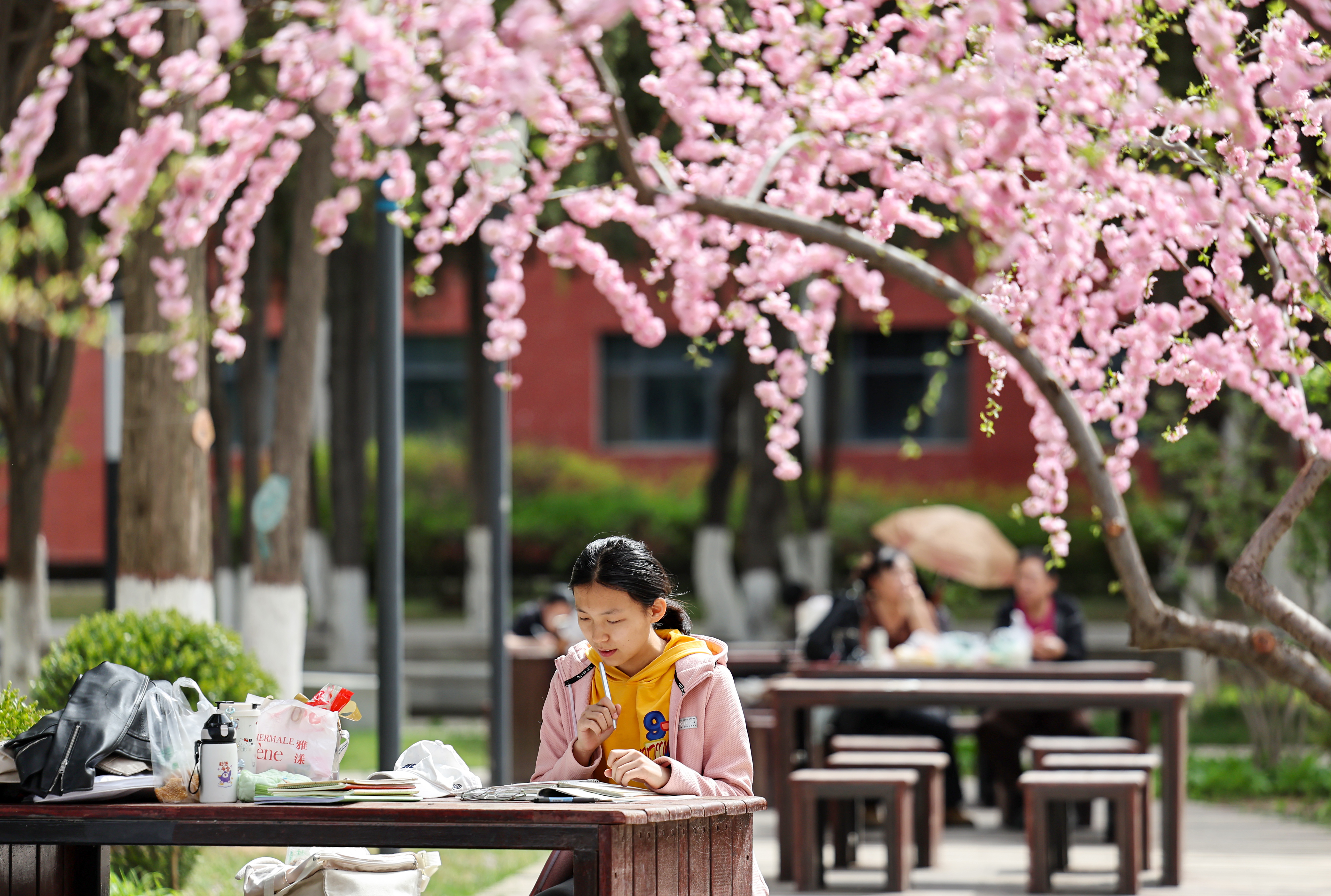 4月5日,一名学生在兰州大学校园内学习。学校供图