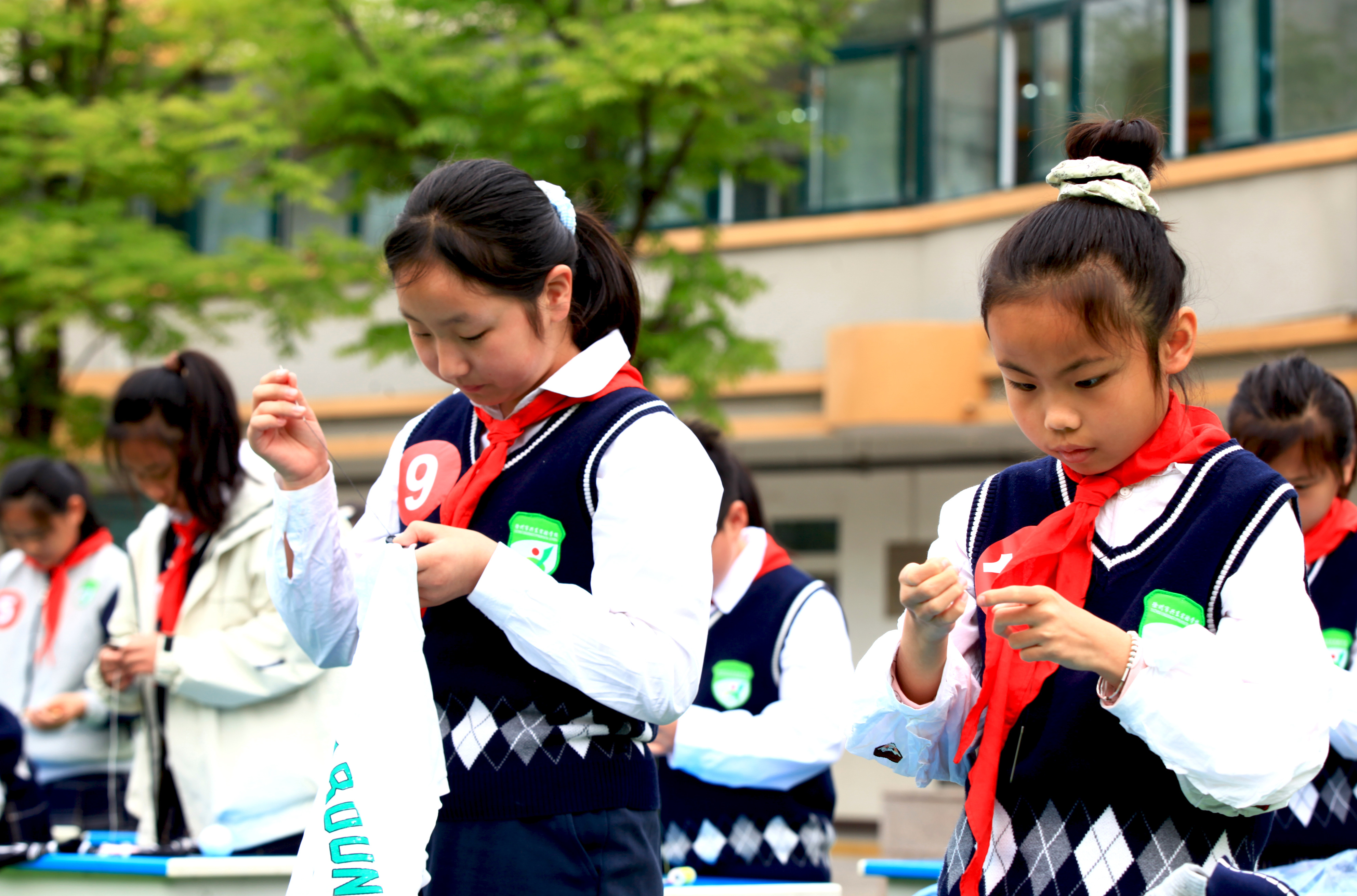 4月28日,江苏省徐州市兴东实验学校举办以“我爱劳动,快乐成长”为主题的劳动技能竞赛,用寓教于乐的方式引导学生养成积极劳动的态度和良好的劳动习惯,迎接“五一”国际劳动节的到来。 中国教育报-中国教育新闻网通讯员 蒯创 摄