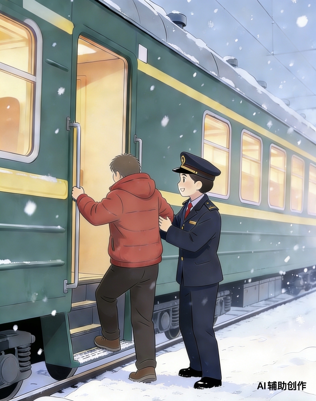 “慢火车”的等候不是“耽误时间”,而是对每一位旅客的尊重;列车员的搀扶不是“额外付出”,而是服务本该有的温度。愿这样的铁路温情常在,愿每一趟旅程都有温暖相伴。(文字/AI漫画:胡圣琨)