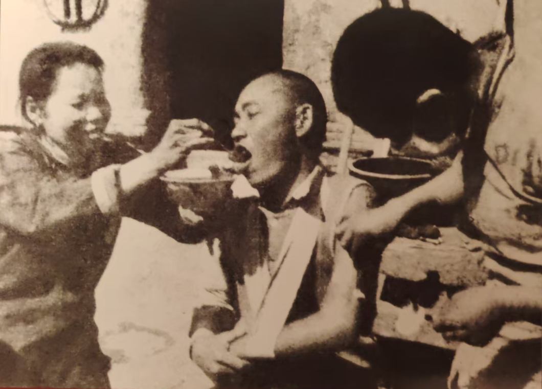 李杏阁奶奶正在给伤员喂饭