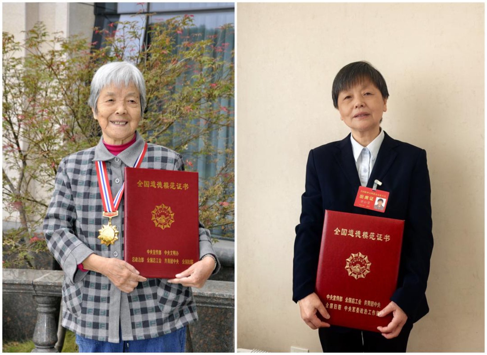 (图为甘公荣的母亲龚全珍当选第四届“全国道德模范”第甘公荣当选第九届“全国道德模范”两枚熠熠生辉的奖章跨越时空交相辉映)