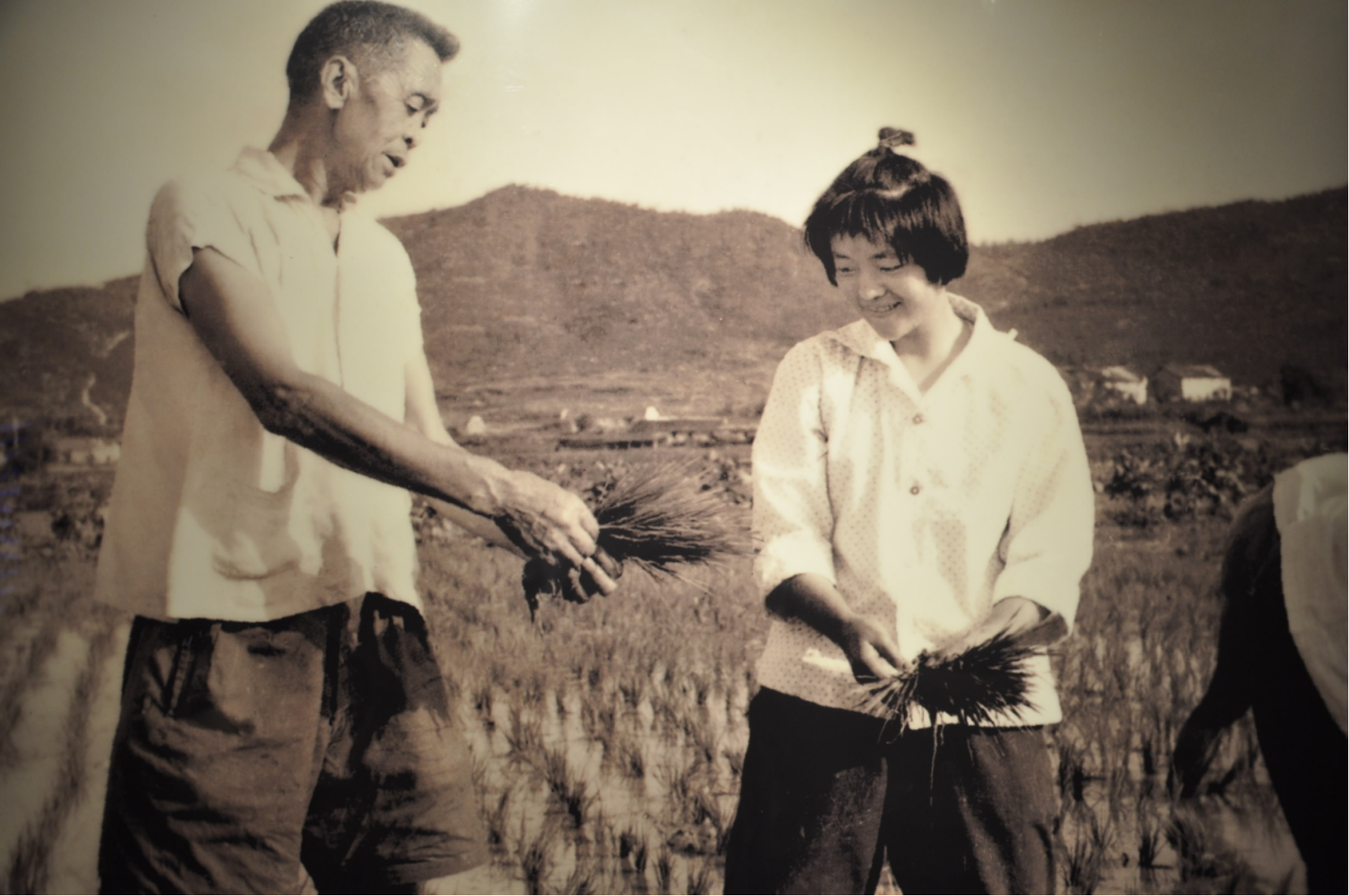 长期的部队后勤工作经历,使父亲养成了精打细算、厉行节约的习惯。甘公荣一边说着一边给记者展示一张泛黄的老照片:甘祖昌将军身着短裤赤脚站在水田里,手里攥着水稻教身旁的女儿插秧。而这张拍摄于1970年的照片,记录了一个将军对女儿的言传身教。